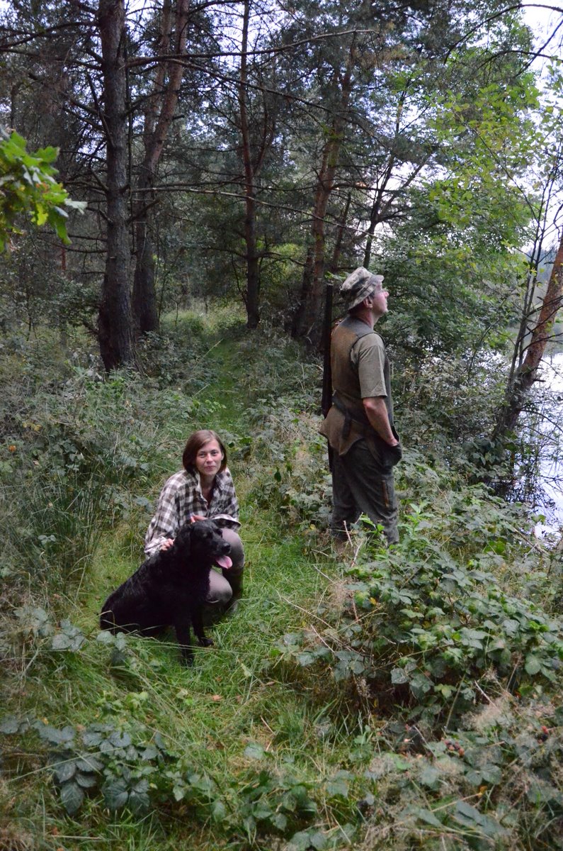 Marta z Bubą, ja wypatruję kaczek, Maciek robi zdjęcia [Krótki wypad na kaczki z Martą, Maćkiem i Bubą]