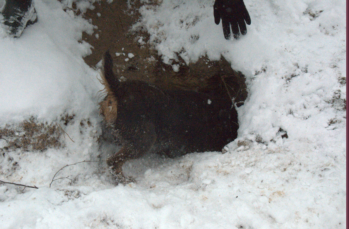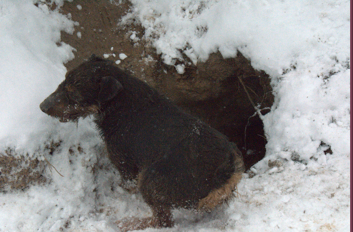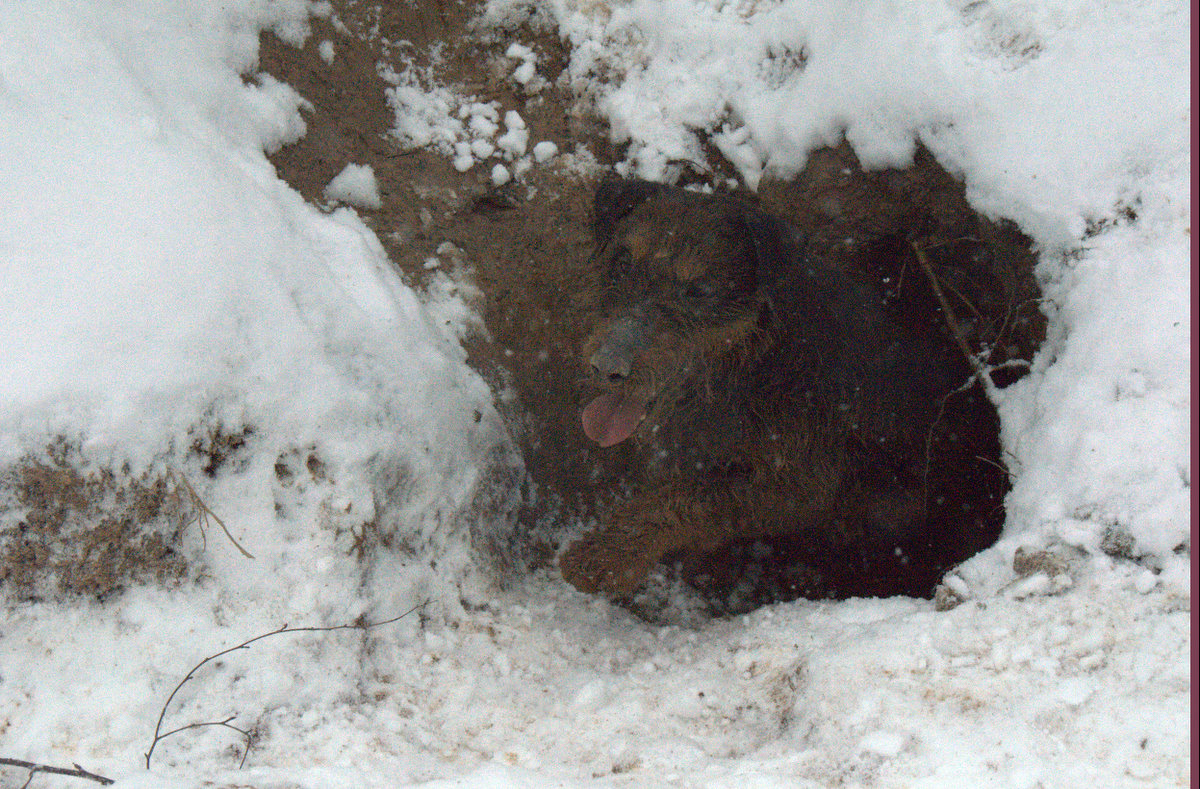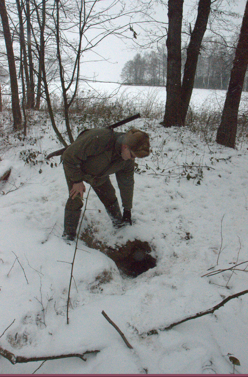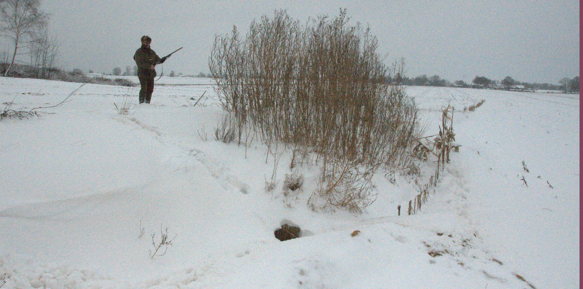 W piątek dodzwoniłem się do Marka układającego od wielu lat z powodzeniem psy myśliwskie a przy tym fana polowania z norowcami na lisy. Umówiliśmy się wstępnie na niedzielny wyjazd na norowanie z jego jagdterierem, którego znałem ze skutecznego wypadu na lisy przed dwoma laty. Czas minął szybko i w niedzielę po 10.00 byłem w jego gospodarstwie w Wiśle Wielkiej. Marek był gotowy do wyjazdu, wzięliśmy Yogiego do samochodu i w teren. Pojechaliśmy na kompleks nor na którym skutecznie polowaliśmy przed 2 laty. Nory znajdują się na niewielkiej grobli w rzadkiej drągowinie olchowej na zapleczu sporego stawu. W okolicy polowaliśmy w tym sezonie na bażanty a uważny czytelnik mojej strony wyłowi zapewne w pamięci zdjęcie Jagi próbującej wejść do zasiedlonej nory w czasie polowania z Maćkiem. Zostawiliśmy samochód na śródpolnej drodze i przez otwarte pole ruszyliśmy w kierunku lisiej ostoi. Od wczoraj padał w naszej okolicy pierwszy tej zimy śnieg, wiał przenikliwy i zimny wiatr jednym słowem idealna pogoda na norowanie. Po drodze zobaczyliśmy liczne i świeże lisie tropy dosyć wyraźnie kierujące się do zaplanowanego celu naszej podróży. Po drodze minęliśmy niewielkie nory noszące ślady wcześniejszego pobytu lisów ale obecnie puste. Zapowiadało się całkiem ciekawie. Kiedy podeszliśmy do kępy drzew będącej celem naszej drogi nagle na polu, około 50 metrów od nas zobaczyliśmy dużego lisa spokojnie dyndującego w kierunku otwartego pola. Gdybyśmy lepiej rozegrali podejście do nor byłby nasz, szkoda. Na grobli pokrytej oknami lisich nor widać było na pierwszy rzut oka, że to jeszcze nie koniec spotkań z lisami w tym miejscu. Marek puścił Yogiego i zaczęło się cierpliwe czekanie na lisa. Pies próbował wchodzić do różnych okien, znikał pod ziemią i po chwili się pojawiał ale widać było, że próbuje znaleźć najlepszą pozycję do ataku. W końcu zniknął na dobre. Stałem przy pniu dużej olchy z dobrym widokiem na część kompleksu a Marek zajął pozycję z drugiej strony. Po dłuższej chwili z nory którą sobie wcześniej upatrzyłem jako prawdopodobną drogę ucieczki lisa wyskoczył piękny rudzielec i ruszył w kierunku pola. Strzelam nieco nerwowo i za szybko i … nie wierzę własnym oczom, lis uchodzi cały i zdrowy. Sprawdzamy trop ani śladu farby, czyste pudło! Szkoda okazji i nie chcę wiedzieć co pomyślał sobie o mnie Yogi. Ponieważ było jeszcze sporo czasu więc pomimo, że w domu czekała żona z urodzinowym obiadem zdecydowaliśmy się na jeszcze jeden kompleks nor. Lisy założyły swoją kryjówkę na niewielkiej skarpie wśród pól górujących nad doliną rzeki Pszczynki a więc w miejscu wielokrotnie opisywanym przeze mnie dzięki licznym wypadom z wyżłami na bażanty. Wiatr mocny i jeszcze bardziej dokuczliwy niż w poprzednim miejscu zanosił na drogę i na nierówności pól śnieg utrudniając zarówno podjazd jak i podejście do nor. Podchodzę od strony lasu a Marek od wsi. Od razu widzę wytopiony śnieg nad oknem, chyba coś jest! Puszczamy psa, który początkowo nie potrafił zdecydować się od której strony zacząć ale jak ruszył to zniknął i tyle go widzieliśmy. Po dłuższej chwili Marek nasłuchując nad oknem usłyszał odgłosy walki z lisem ale potem one ucichły i w norze zrobiło się cicho. Staliśmy, marzliśmy a w końcu zaczęliśmy się niepokoić o psa. Na dodatek ten urodzinowy obiad i cała czekająca rodzina!!! Ostatecznie Marek został na stanowisku a ja ruszyłem do Michała po łopatę. Po powrocie okazało się, że Yogi na krótko pokazał się na powierzchni ale zaraz zniknął pod ziemią. Na szczęście widmo kopania za psem odpłynęło w dal. Po dłuższej chwili pies pokazał się znowu i tym razem Marek zdążył wziąć go na otok, miał mocno pocięty pysk ale minę raczej zwycięzcy niż pokonanego. Ja zostałem nad norą a Marek z psem poszli do samochodu. Pomimo długiego czekania lis się nie pojawił. Ciekawe co się zdarzyło pod ziemią? Wracaliśmy szybko do domu (urodzinowy obiad!!) ale po drodze snuliśmy plany kolejnych wypadów.