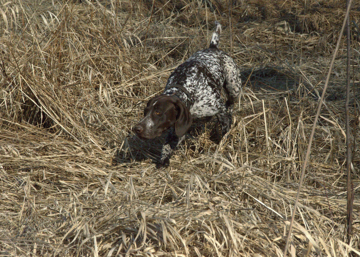 FAZA z Żubrowiska, córka Frygi i wnuczka Jagi pokazywana była na tej stronie przed kilku miesiącami. Tym razem wybrałem się z Konradem oraz właścicielem Fazy na trening na terenie zasobnych w bażanta łąk nad Pszczynką. Przy okazji tego wyjścia postanowiłem też pokazać elementy pracy kolegów z KŁ Żubr w Pszczynie, którego łowczym jest Konrad, a które jasno świadczą, że dobre stany zwierzyny w tym łowisku nie są dziełem przypadku. Suczka, choć nieco rozpuszczona po zimie, pracowała pięknie dając mi okazję do zrobienie kilku ciekawych zdjęć, które pokazane są w załączonej galerii. Faza ma dużą pasję łowiecką, piękną stójkę i wrodzoną skłonność do współpracy z przewodnikiem. Potrzeby jest jeszcze niewielki szlif jej wrodzonych cech i planowane na ten sezon próby i konkursy powinna zaliczyć w dobrym stylu. Poniżej karty oceny eksterieru z różnych wystaw w klasie szczeniąt i młodzieży.