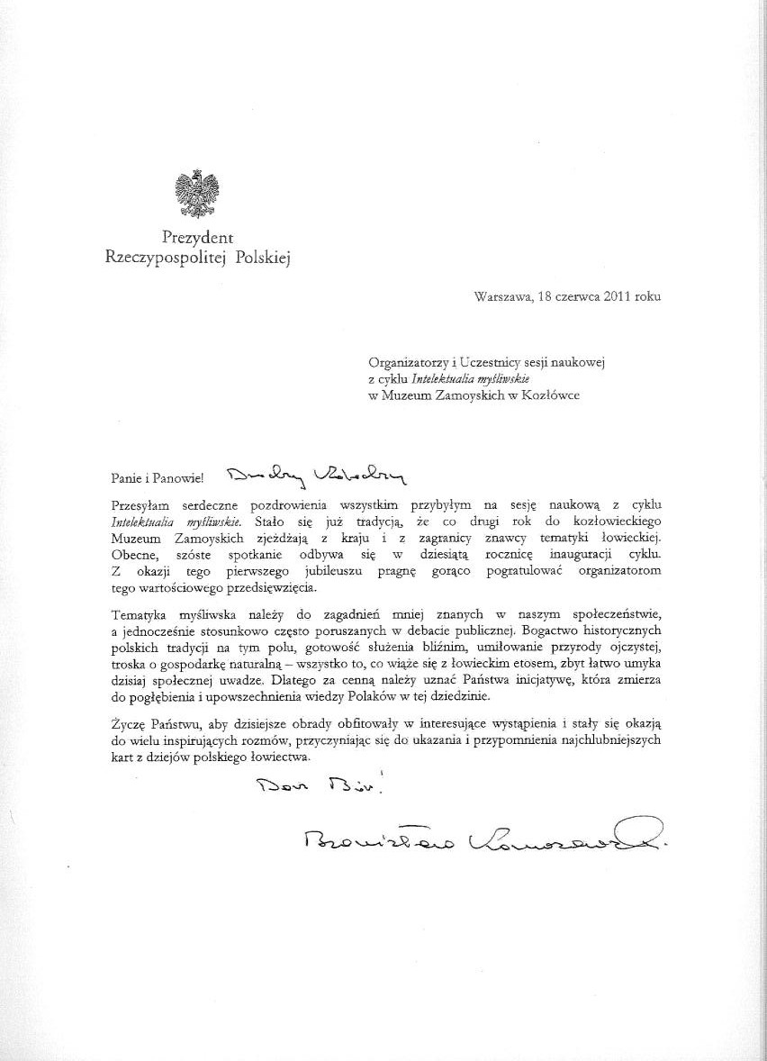 - List Prezydenta RP Pana Bronisława Komorowskiego do uczestników spotkania