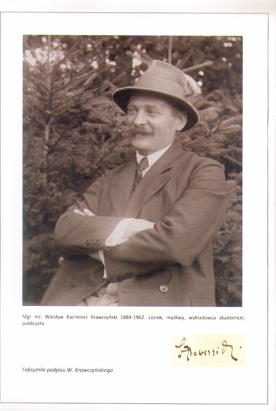 W ramach wspomnień o wybitnych postaciach polskiego łowiectwa, i tak jak to się zwykle składa również leśnictwa, warto przypomnieć postać Wiesława Kazimierza Krawczyńskiego, którego 50 rocznicę śmierci uroczyście obchodzono w maju 2012 w Łańcucie. ORŁ w Rzeszowie wydała z tej okazji wspomnienia o zmarłym, autorstwa Aldony Cholewianki-Kruszyńskiej, opatrzone obszernym wstępem autorstwa Prezesa ORŁ w Rzeszowie Marka Rogozińskiego. Pięknie wydana publikacja pokazuje materiały archiwalne będące własnością rodziny oraz znajdujące się w posiadaniu Muzeum Zamkowego w Łańcucie. Wiesław Kazimierz Krawczyński urodził się w 1884 r. w Lesku a dyplom mgr inżyniera leśnika uzyskał po 6-letnich studiach w wiedeńskiej Akademii Ziemiańskiej. Potem przez wiele lat pracował jako dyrektor dóbr i lasów hr. Romana Potockiego w Pomorzanach koło Tarnopola, był nadleśniczym Lasów Państwowych w Zielonce k. Poznania wreszcie był, aż do wybuchu II Wojny Światowej, dyrektorem Lasów Ordynacji Łańcuckiej hr. Alfreda Potockiego. Wykładał leśnictwo na wielu polskich uczelniach – na Wydziale Leśnym Uniwersytetu im. Adama Mickiewicza w Poznaniu, Wydziale Leśnym Politechniki Lwowskiej, Wydziale Rolnym i Leśnym Uniwersytetu Jagiellońskiego w Krakowie. Jest autorem wielu publikacji dotyczących leśnictwa i łowiectwa, m.in. jest autorem podręcznika „Łowiectwo” wydanego w 1924 r. i wznowionego po wojnie w 1947 r. Wielu moich rówieśników pamięta z pewnością ten podstawowy zapis wiedzy o łowiectwie w tamtych czasach. Wiesław Kazimierz Krawczyński był wybitnym praktykiem i teoretykiem leśnictwa i łowiectwa ale też człowiekiem wszechstronnie uzdolnionym. Warto wiedzieć, że jest autorem zarówno słów jak i muzyki do „Hymnu Leśników” powstałego w latach 30-tych. Życie jego, jak wielu wybitnych ludzi w tamtych czasach napiętnowane było wpływem wojny i ścierania się sowieckiego i niemieckiego totalitaryzmu – jego syn Wiesław Krawczyński spędził 10 lat w łagrach Syberii, wrócił szczęśliwie do Polski dopiero na 2 lata przed śmiercią ojca. Warto też zajrzeć do opublikowanych przez niego wspomnień zapisanych w „Przez tundrę i tajgę po sowieckich łagrach” wydanych przez Kubajak w 2010 r. Wiesław Kazimierz Krawczyński to kolejna wybitna postać polskiego łowiectwa o której warto pamiętać, widząc zarówno jego ogromną wiedzę jak i przymioty osobiste.