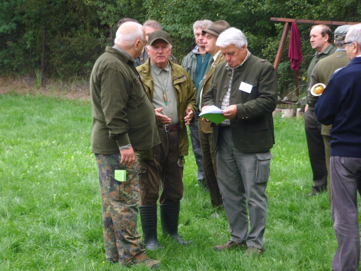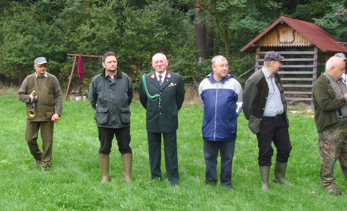 - Od prawej Łowczy Okręgowy, Prezes KŁ Trop oraz Konrad szef Komisji Kynologicznej ORŁw Katowicach dusza imprezy