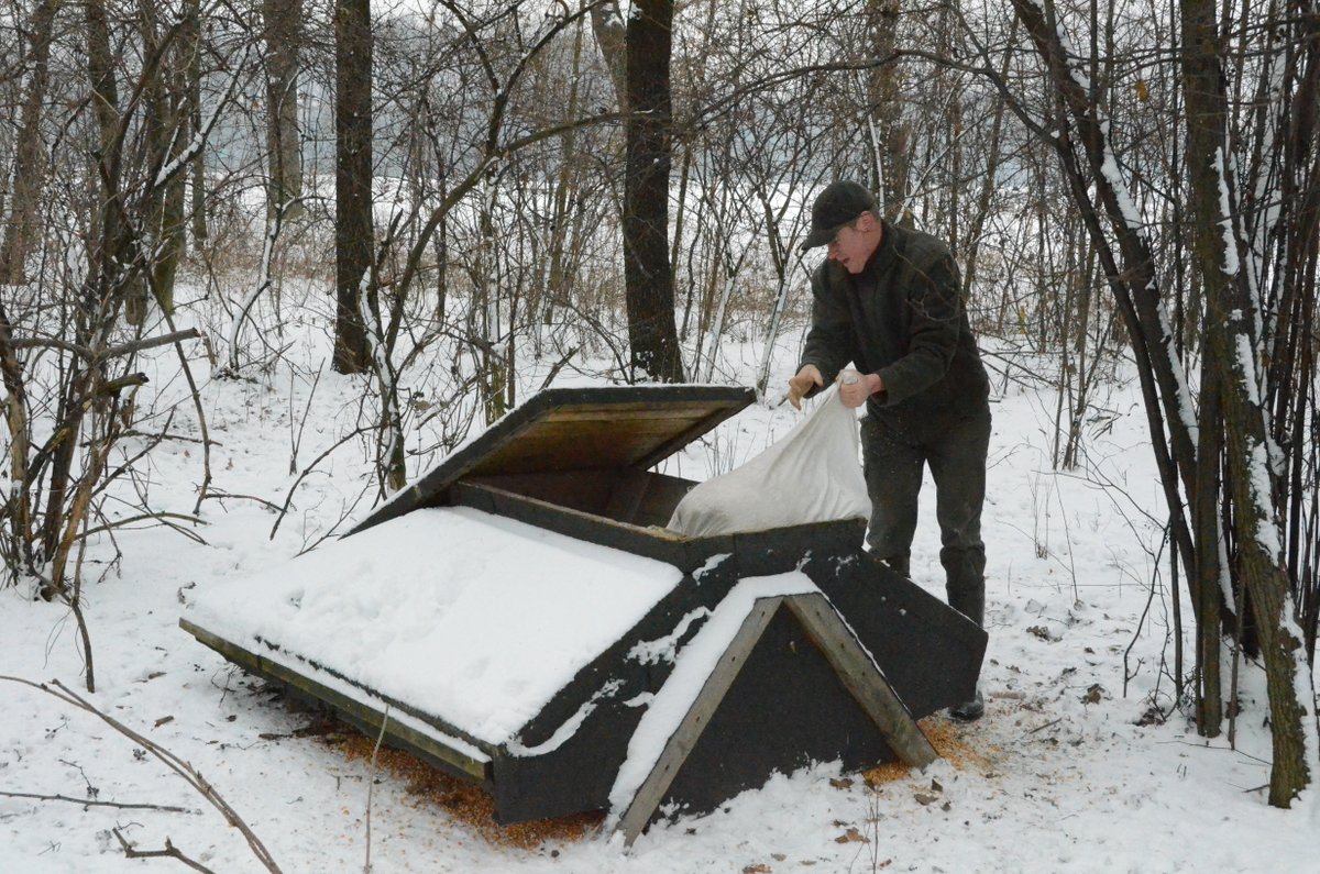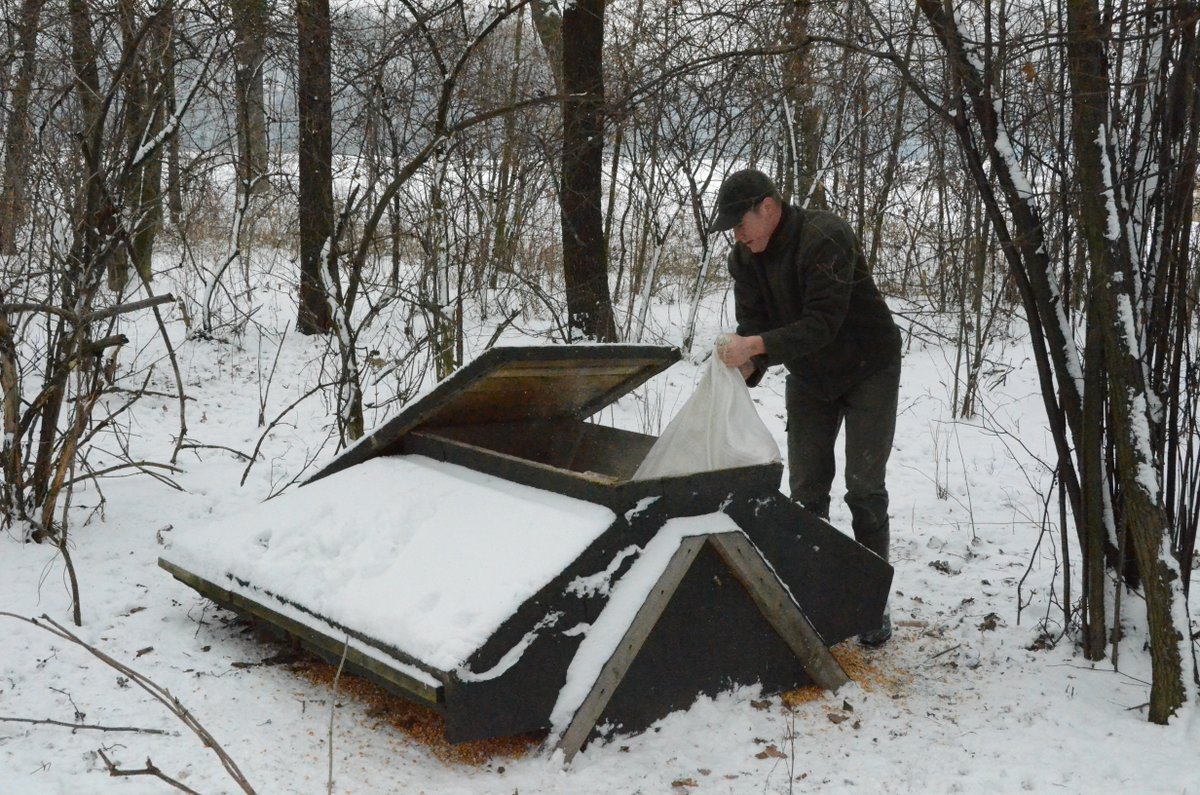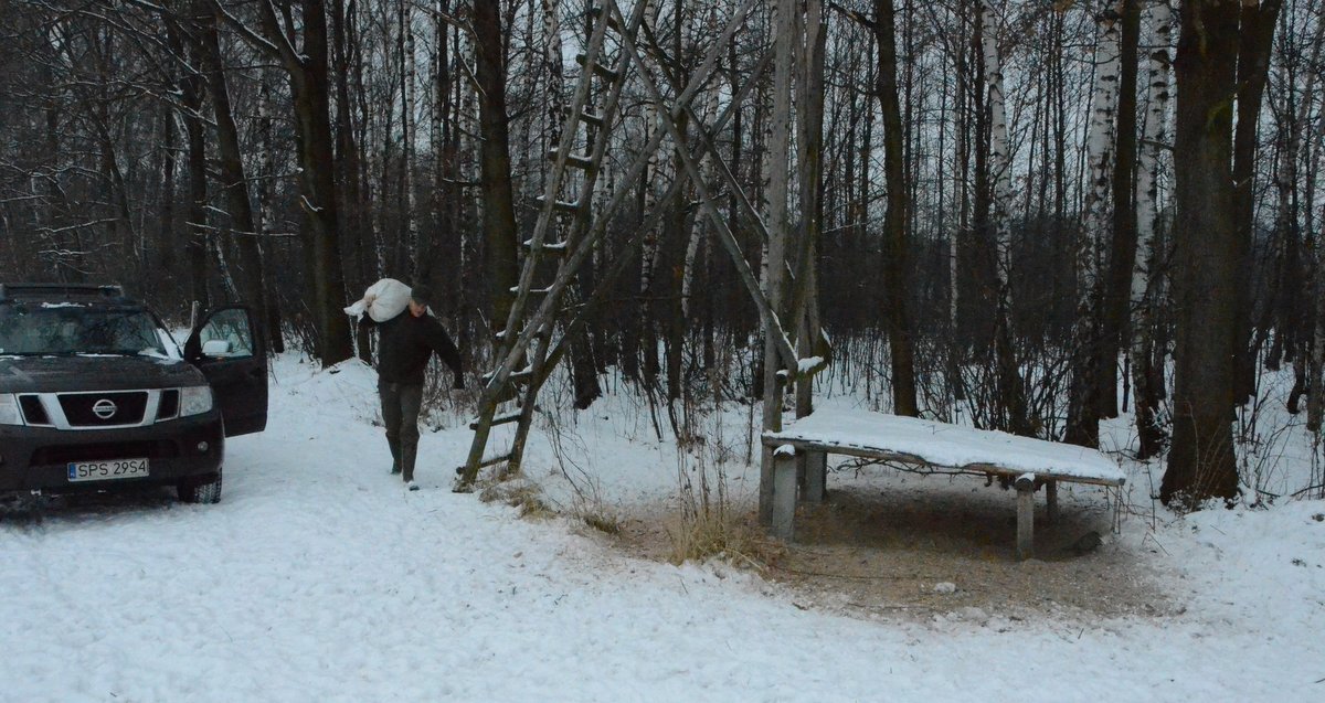 Jeżeli chcemy mieć dobre stany drobnej zwierzyny, szczególnie bażantów, musimy jej zapewnić możliwie dobre warunki przetrwania zimy. Bażant syty nie jest tak narażony na atak drapieżnika, wiosną jest lepiej przygotowany do tokowiska, jednym słowem, możemy liczyć na lepszy stan jego populacji w kolejnym sezonie. W dokarmianiu ważna jest ciągłość a przecież z wykładanej karmy korzystają też inni mieszkańcy pól i lasów, i to czasem bardzo intensywnie. Jednym słowem pamiętając, że bażant paśników nie jada trzeba pilnować stale ich zawartości. Ruszyliśmy z Maćkiem na kontrolę stanu zaopatrzenia a kilka zdjęć z tego wyjazdu poniżej.