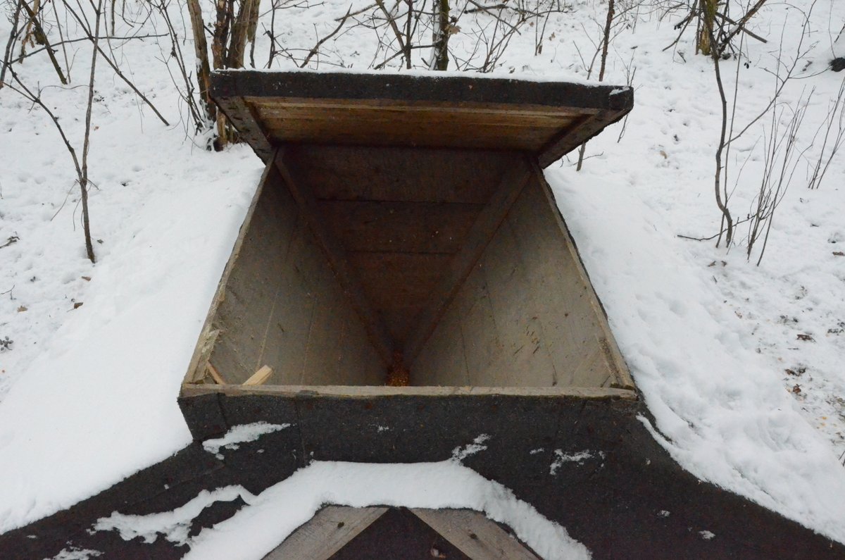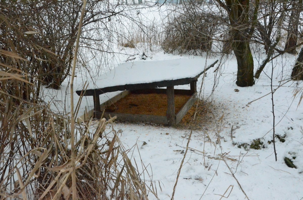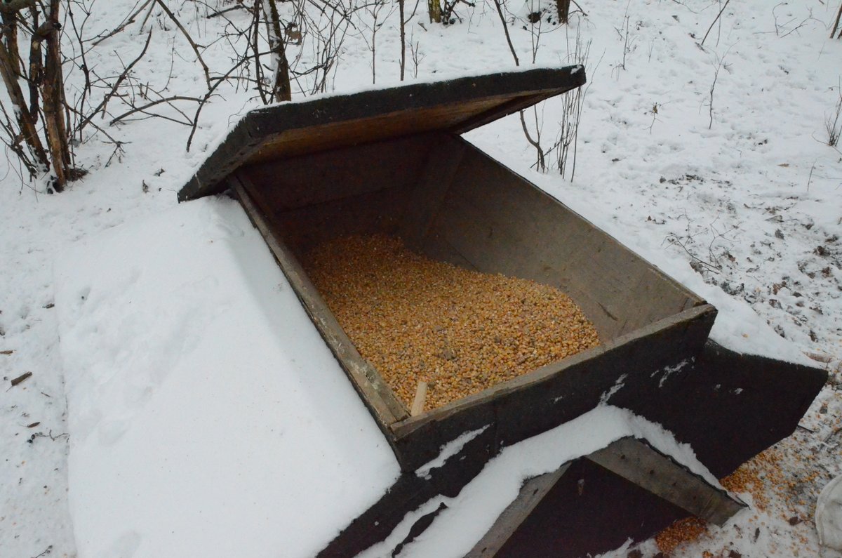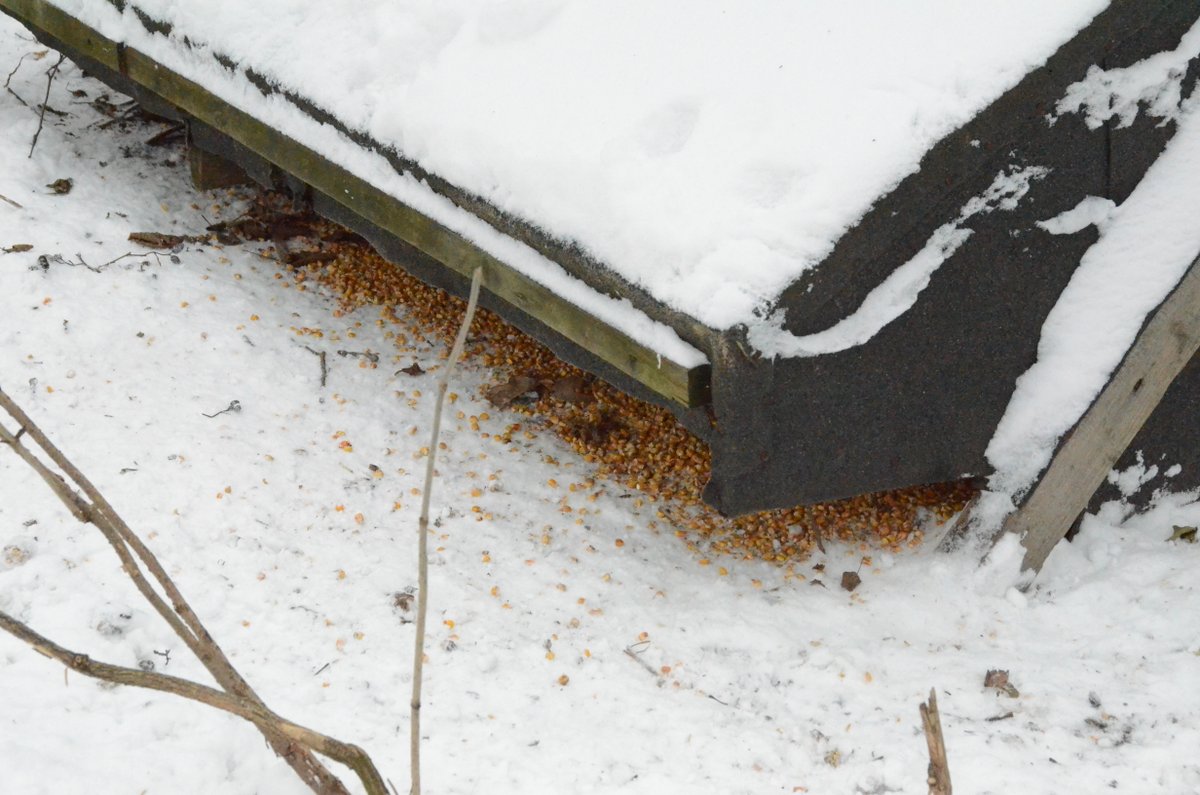 - W tym miejscu ziarna jest dosyć pomimo intensywnej aktywności bażantów i „drobiazgu”. Deski zabezpieczają przed inwazją sarny