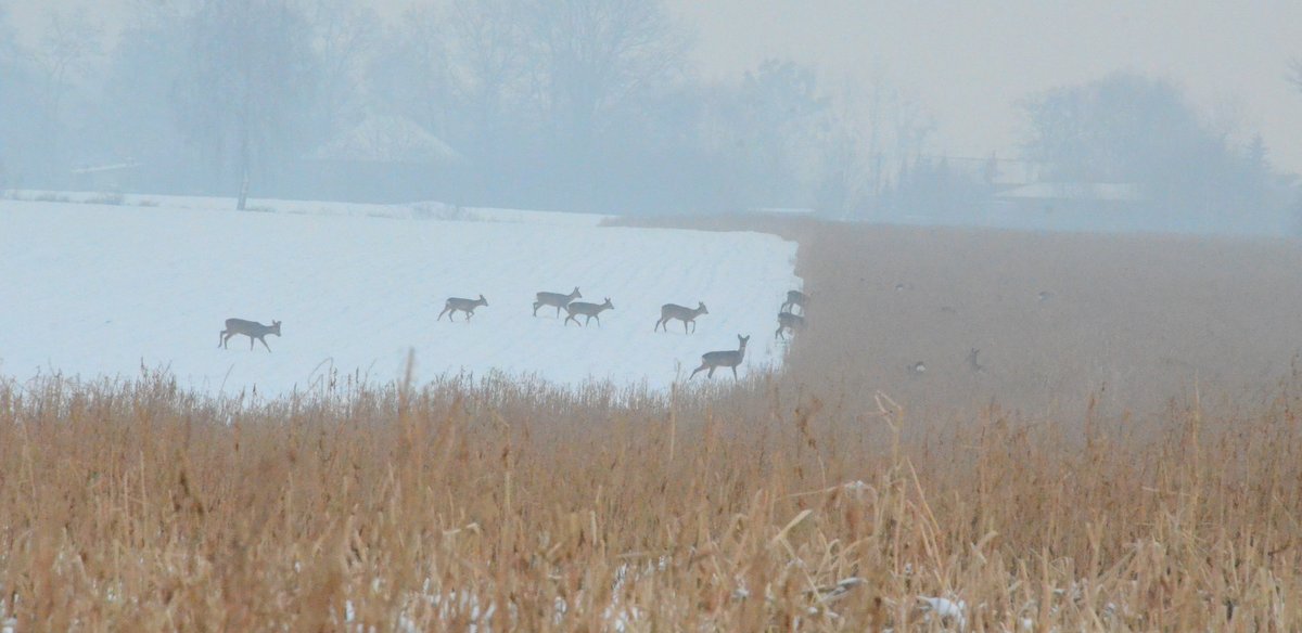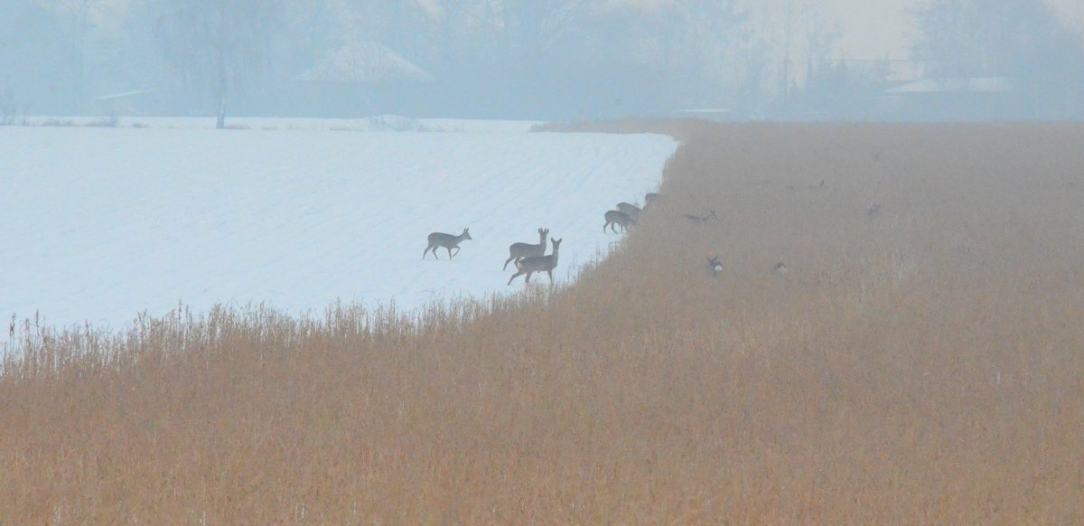 - Idziemy długim na chyba kilometr pasem niezaoranej gorczycy, wspaniałym magazynem karmy dla saren w okresie niedostatku