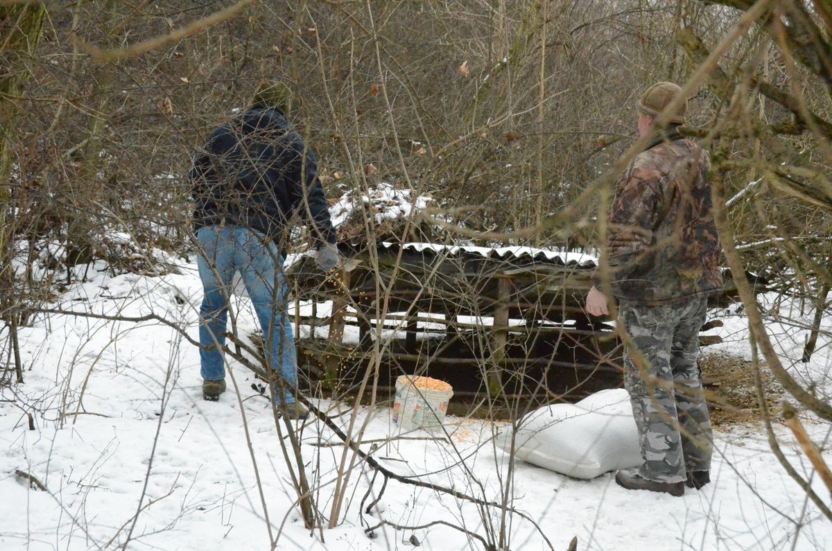 - Praca wre. Widać staranne zabezpieczenie karmy dla bażantów przed najazdem sarny