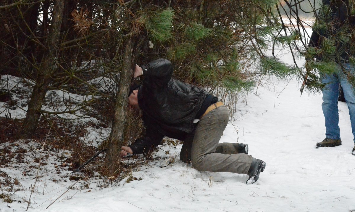 - Po drodze małe porządki na drodze – usuwanie pochylonej przez śnieg sosenki utrudniającej przejazd