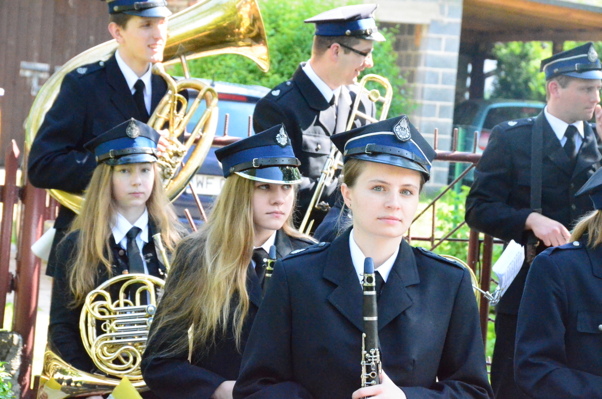 - Orkiestra strażacka w cieniu też oczekuje na rozpoczęcie przygrywając. czasem dla rozgrzewki