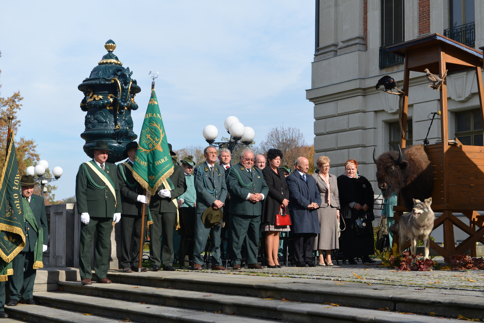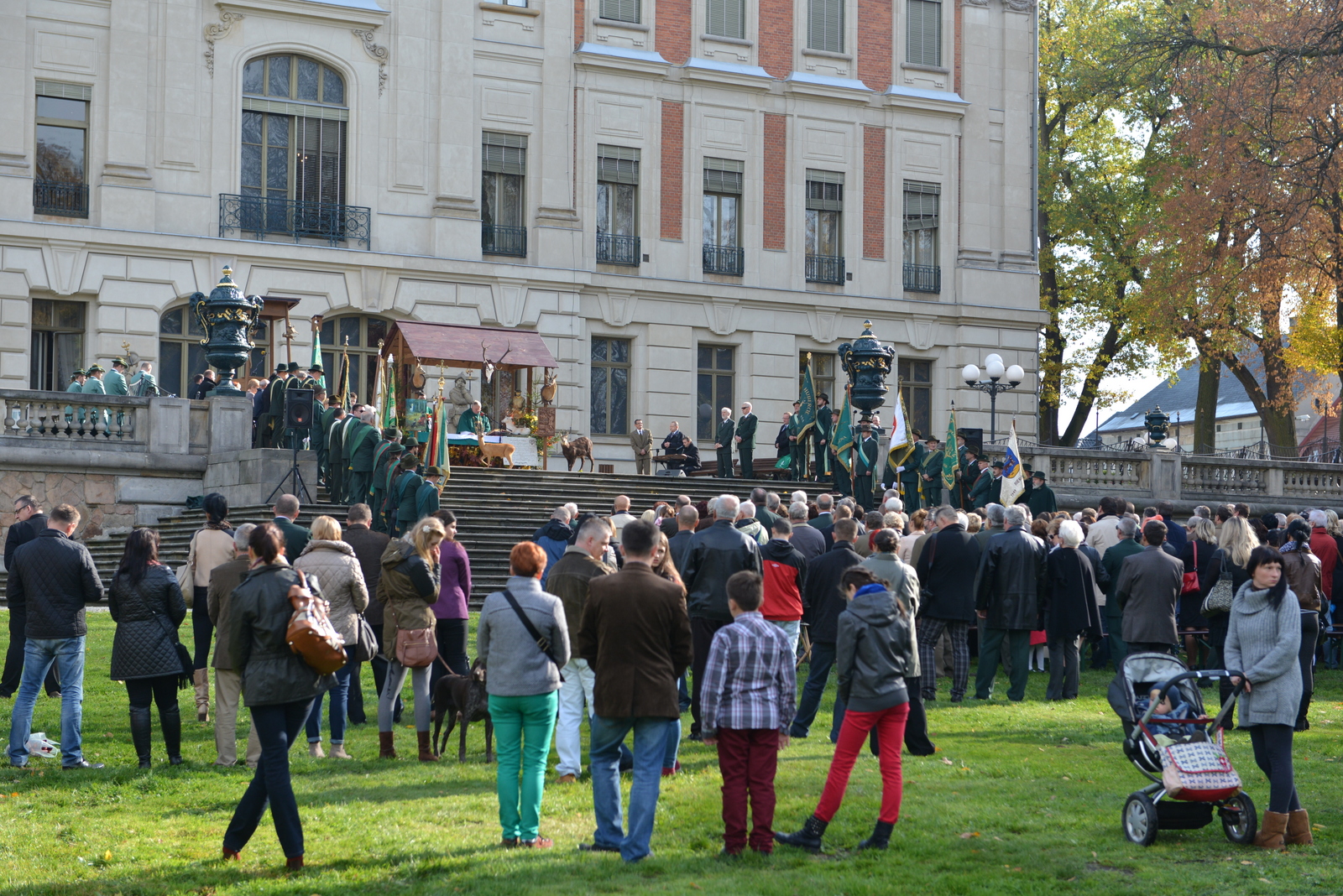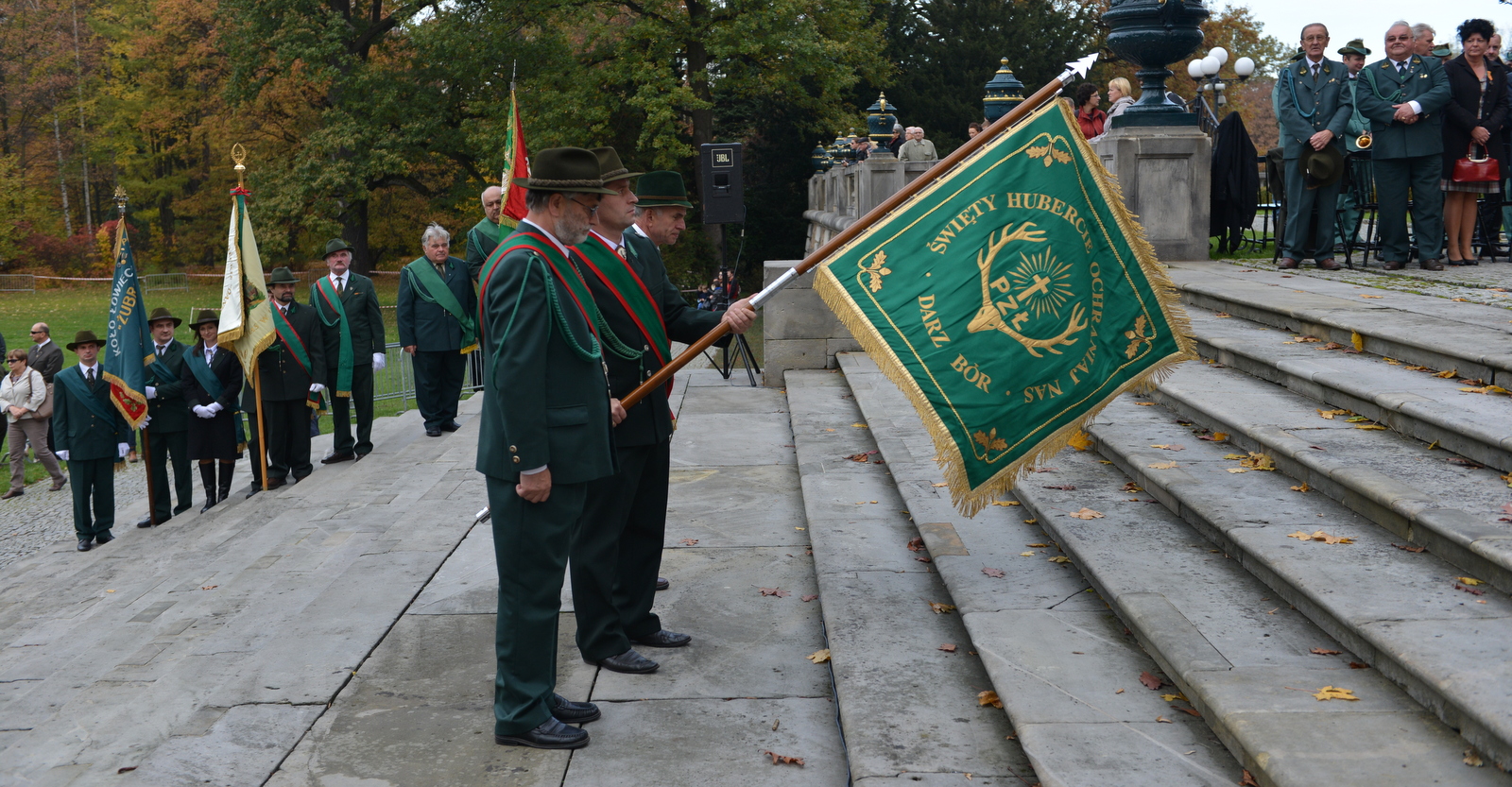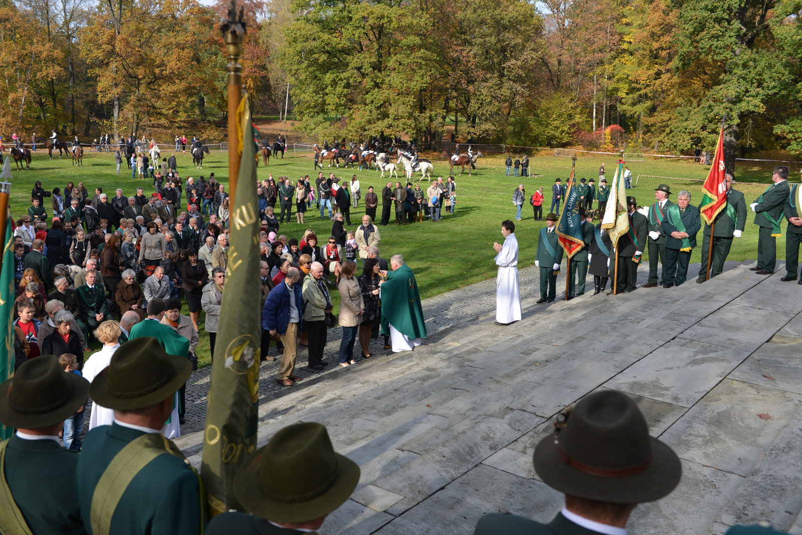W niedzielę 20 października myśliwi rejonu pszczyńskiego spotkali się u stóp Pałacu Pszczyńskiego aby świętować 90-lecie PZŁ oraz uczcić nadchodzący dzień świętego Huberta. Spotkanie rozpoczęło się jak zwykle mszą świętą którą poprowadził kapelan ORŁ w Katowicach ks. Kasperczyk. Na spotkanie przybyli przedstawiciele kół rejonu pszczyńskiego pod swoimi sztandarami, władze łowiectwa śląskiego oraz liczni przedstawiciele władz samorządowych. Rozdano odznaczenia łowieckie. Spotkanie ozdobiła pogoń za lisem w wykonaniu jeźdżców najlepszych stajni regionu oraz tradycyjny pokaz psów ras myśliwskich. Obrazy z tego pięknego i słonecznego spotkania myśliwych oraz sympatyków łowiectwa w galerii poniżej – zapraszam.