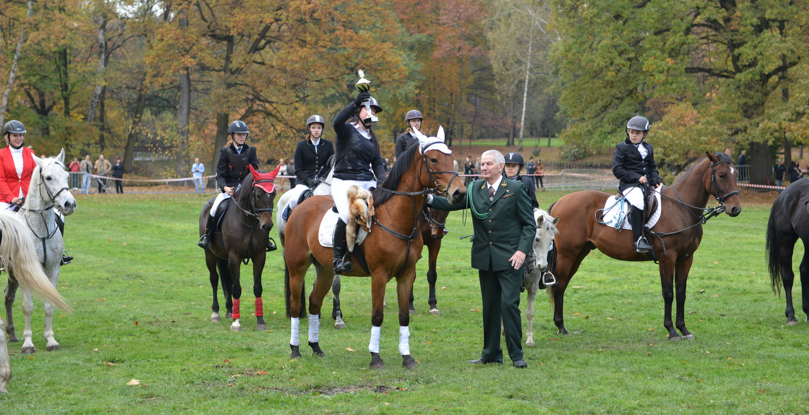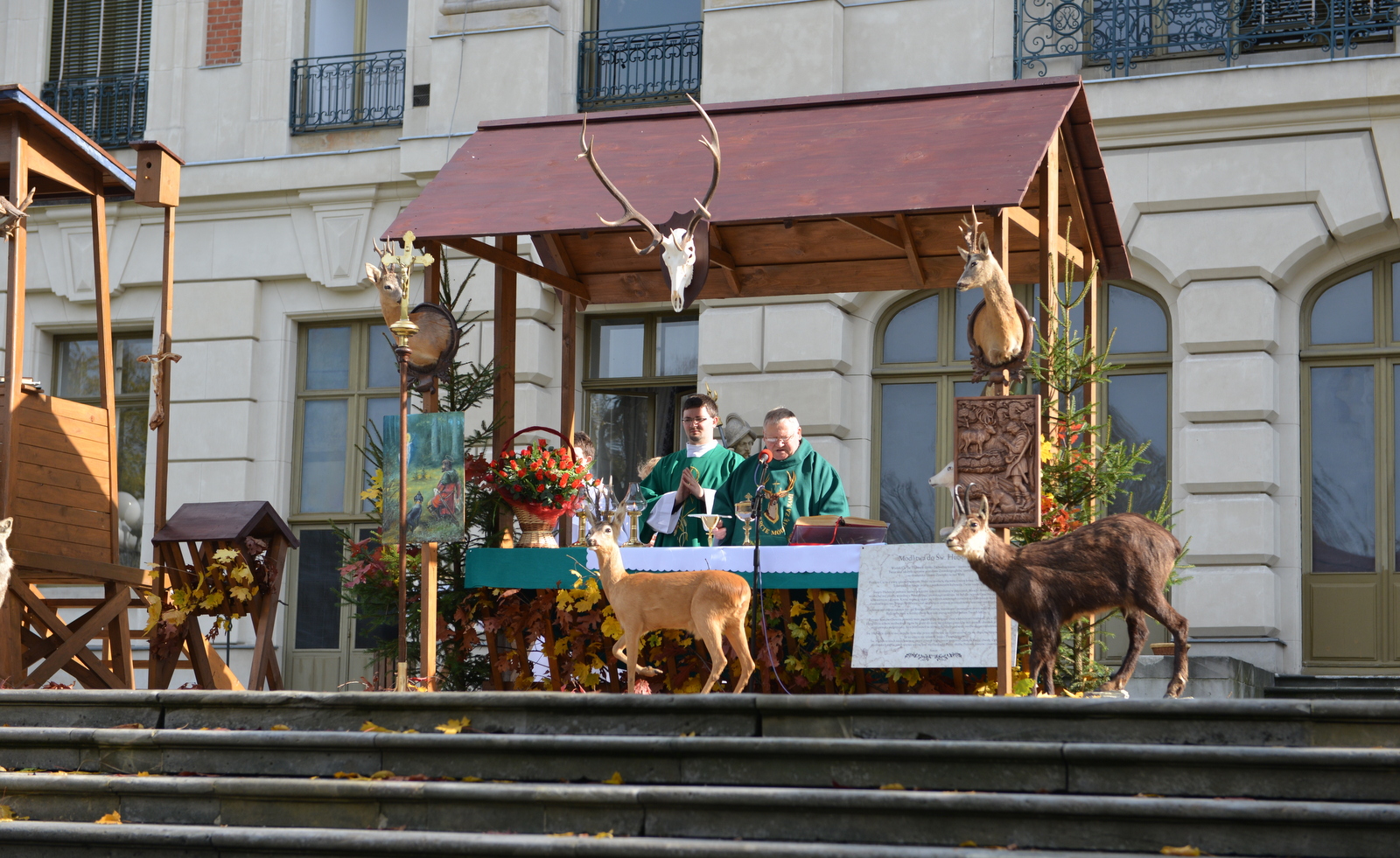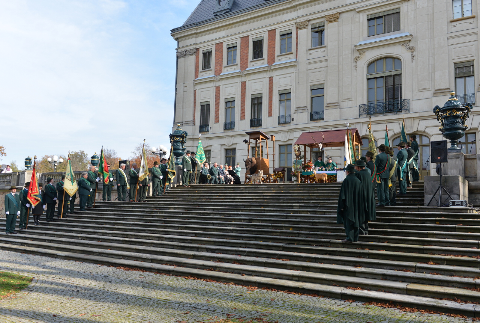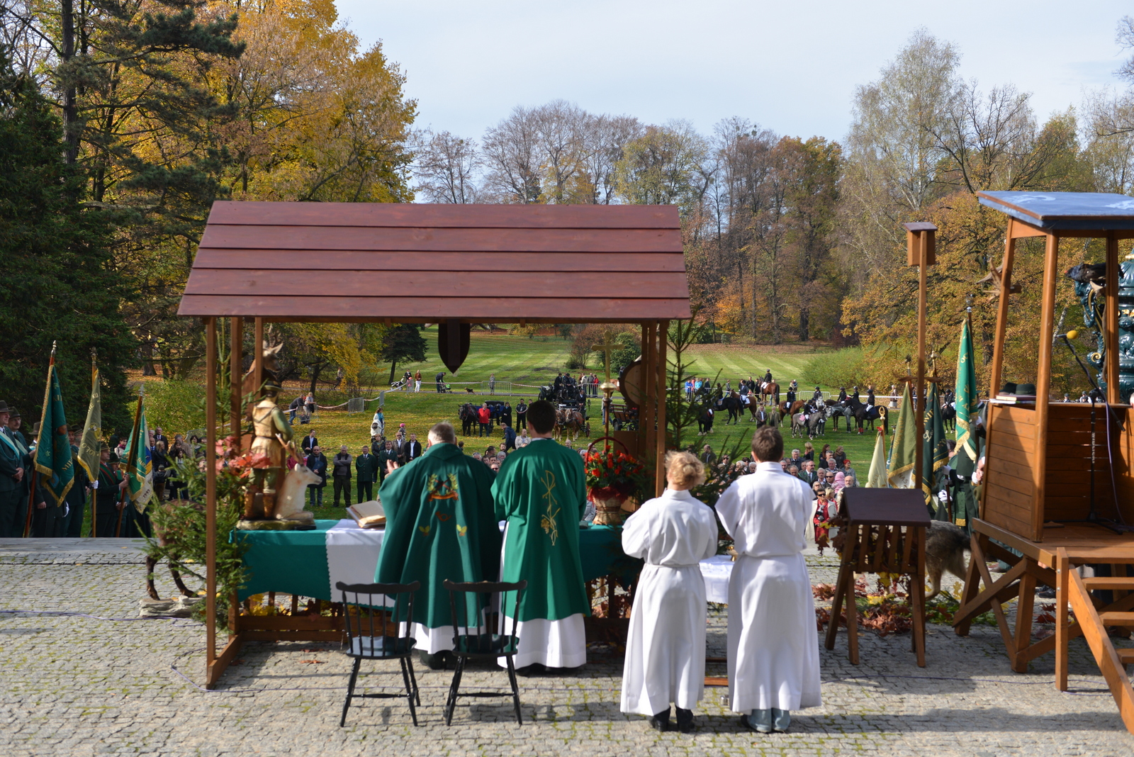 W niedzielę 20 października myśliwi rejonu pszczyńskiego spotkali się u stóp Pałacu Pszczyńskiego aby świętować 90-lecie PZŁ oraz uczcić nadchodzący dzień świętego Huberta. Spotkanie rozpoczęło się jak zwykle mszą świętą którą poprowadził kapelan ORŁ w Katowicach ks. Kasperczyk. Na spotkanie przybyli przedstawiciele kół rejonu pszczyńskiego pod swoimi sztandarami, władze łowiectwa śląskiego oraz liczni przedstawiciele władz samorządowych. Rozdano odznaczenia łowieckie. Spotkanie ozdobiła pogoń za lisem w wykonaniu jeźdżców najlepszych stajni regionu oraz tradycyjny pokaz psów ras myśliwskich. Obrazy z tego pięknego i słonecznego spotkania myśliwych oraz sympatyków łowiectwa w galerii poniżej – zapraszam.