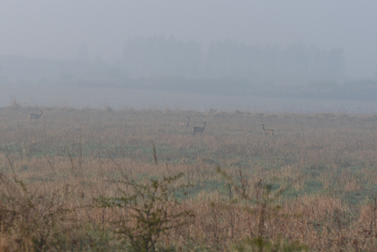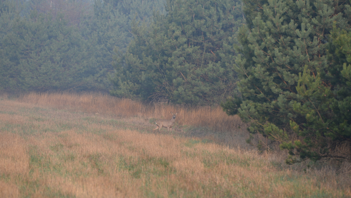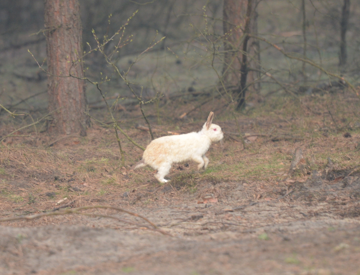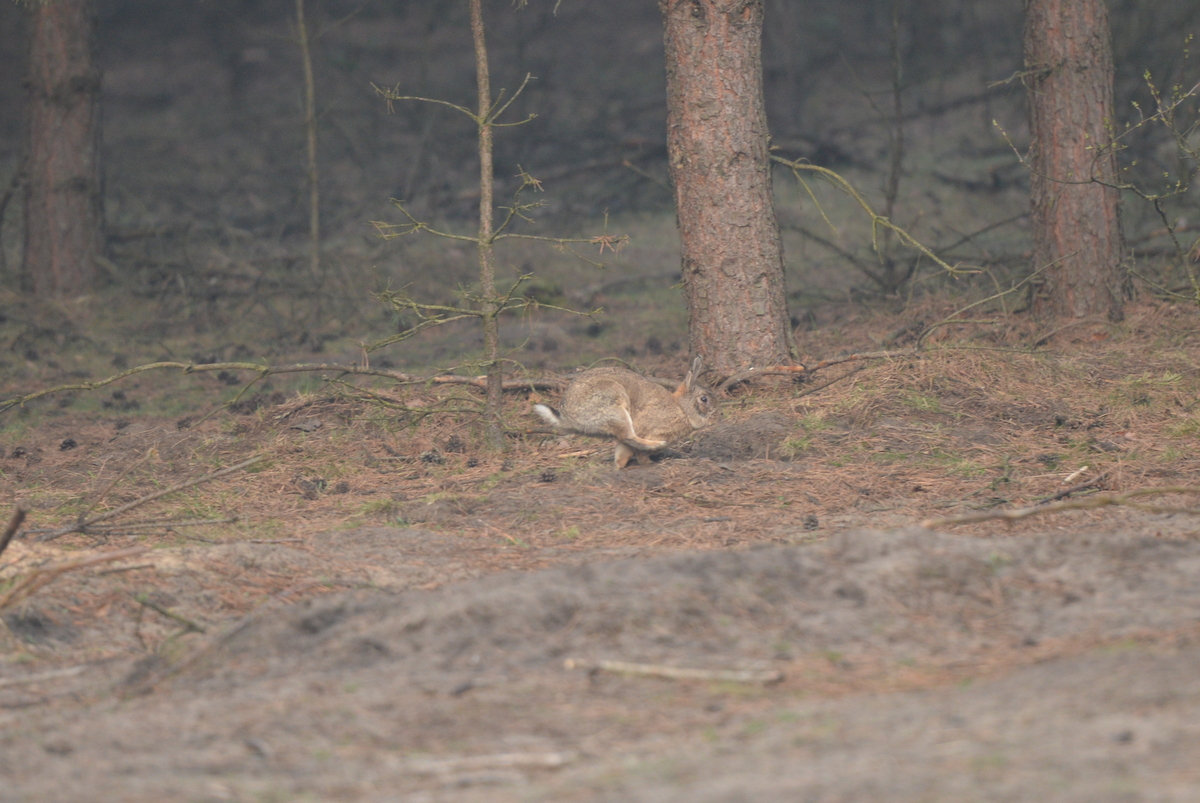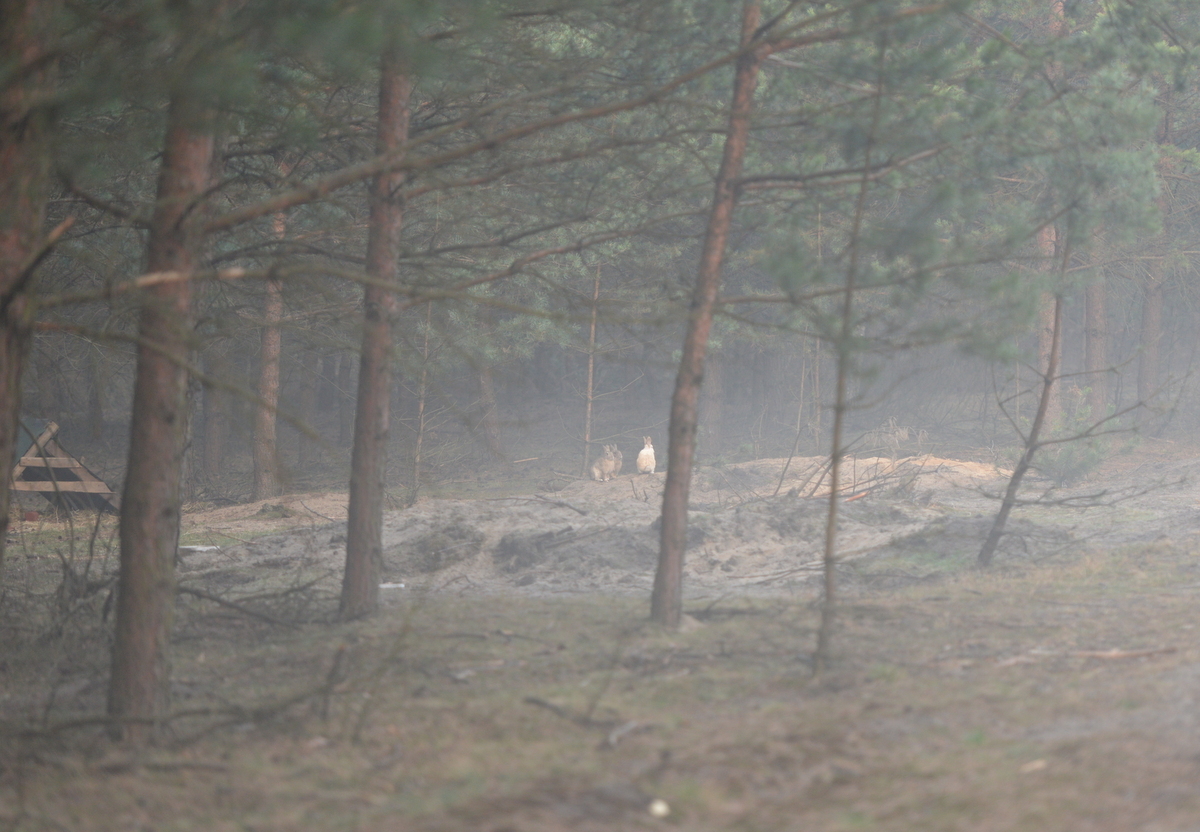 - Mglisty poranek utrudnia zrobienie dobrego zdjęcia ale pozwala pokazać nową dumę Szymona – udaną introdukcję dzikiego królika