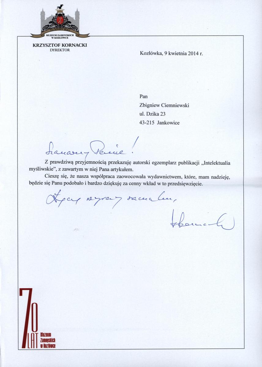 Jak pisałem przed kilkoma miesiącami, we wrześniu 2013 r. brałem aktywny udział w pięknej, cyklicznej imprezie organizowanej w Muzeum Zamoyskich w Kozłówce – Intelektualiach Myśliwskich. Obecnie ukazały się, pięknie wydane przez muzeum, materiały sesji. Warto na nie rzucić okiem, a zainteresowanym takim oglądaniem łowiectwa zanurzyć się w nie głębiej. Poniżej kilka ważnych stron materiałów oraz miły list Pana Dyrektora Kornackiego towarzyszący publikacji.