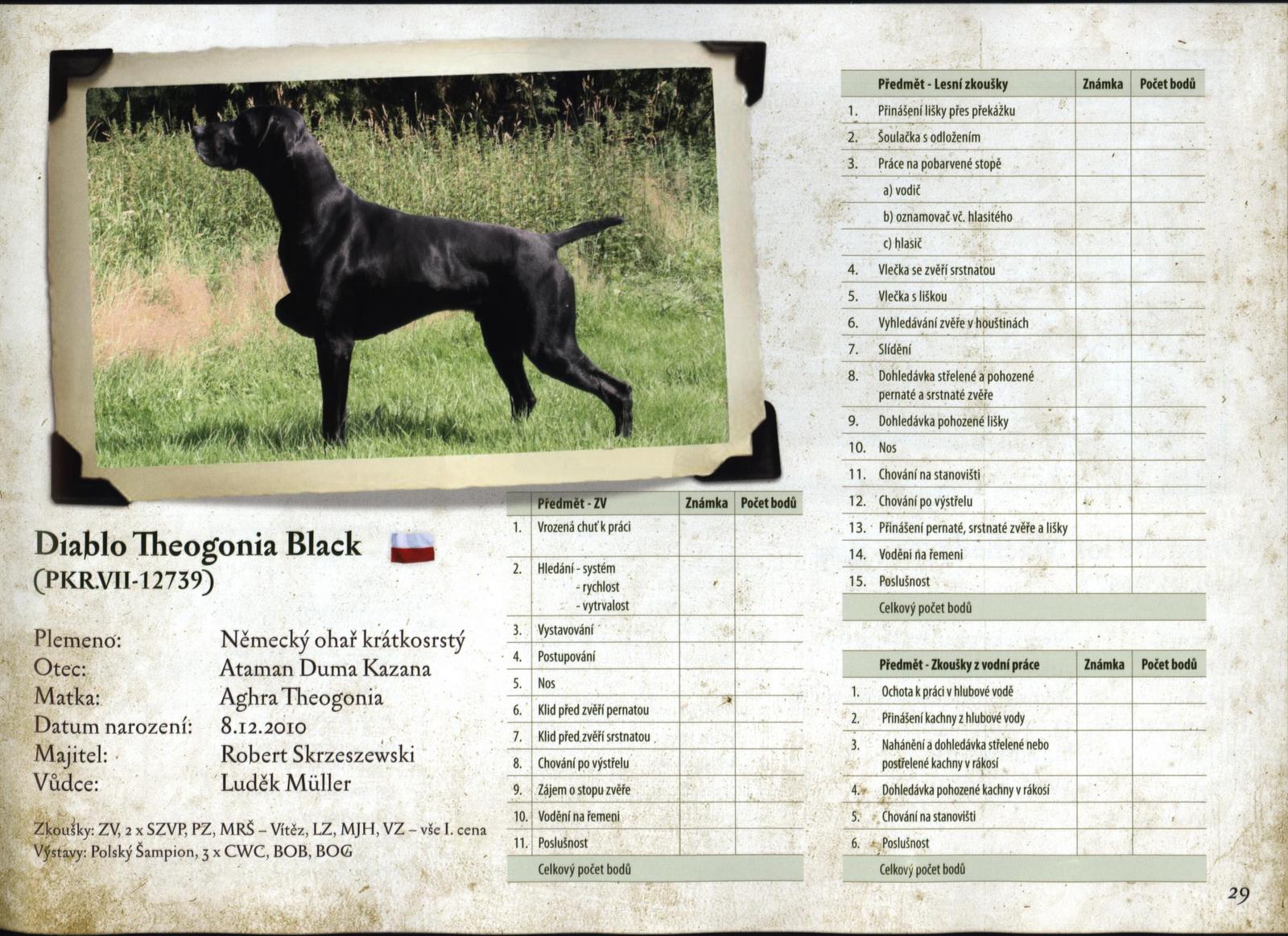 Bardzo pięknie wydany katalog prezentuje stawkę psów z ich osiągnięciami, hodowcami i prowadzącymi oraz podaje ważne informacje o samym memoriale. Katalog zawiera wykaz konkurencji z punktacją, regulamin zawodów, krótką historię memoriału i szereg innych informacji. Całość jest pięknie wydana na doskonałym papierze. Bardzo miłym gestem jest zamieszczenie przez organizatorów informacji o powstaniu Klubu Wyżłów PZŁ oraz o przyszłorocznym Memoriale Erwina Dembinioka. Chcę wierzyć, że jest to zapowiedź udziału czeskich przewodników w naszych zawodach. Trzeba wreszcie powiedzieć, że w memoriale brały udział 3 polskie psy uzyskując całkiem niezłe rezultaty. Wyniki w sprawozdaniu z drugiego dnia, tutaj prezentacja polskich wyżłów zamieszczona w katalogu.