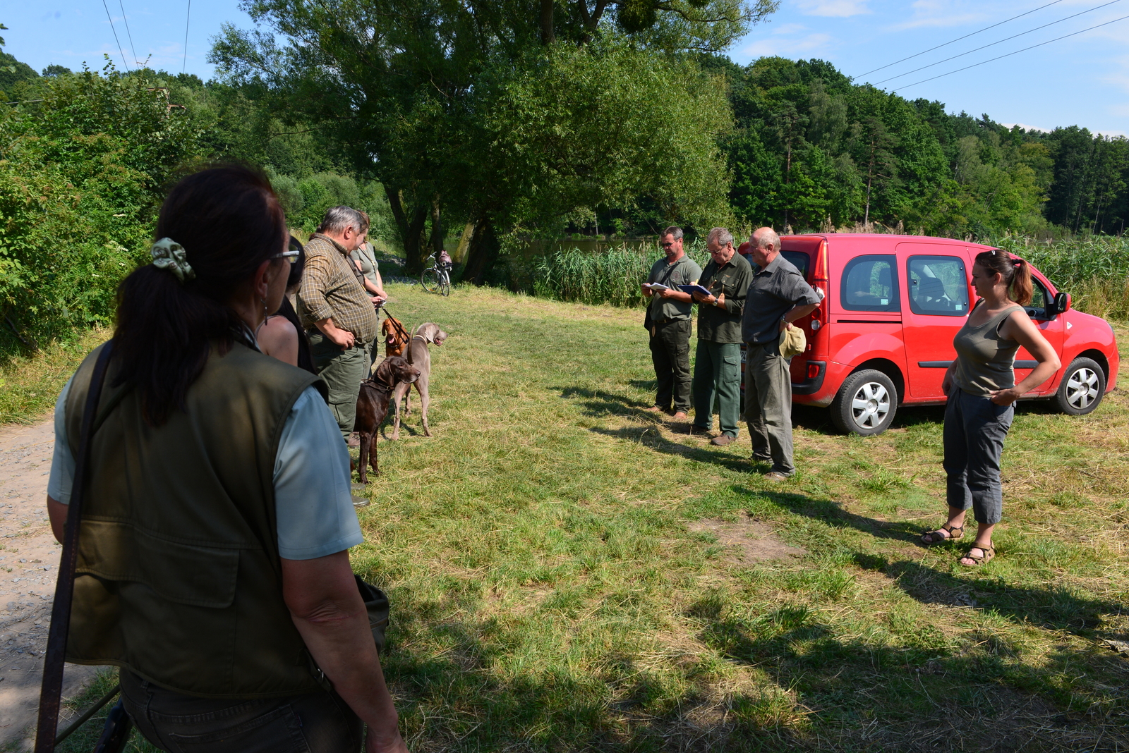 Wracając do samego konkursu – psy podzielone zostały na dwie podstawowe grupy – jedna, pierwszego dnia udała się na pole a potem na wodę, druga natomiast cały dzień realizowała konkurencje leśne. Każda z tych grup podzielona była z kolei na mniejsze sekcje składające się z 4-5 psów, co usprawniło przebieg zawodów jednak dla sprawozdawcy było zaporą nie dającą szansy na obserwację wszystkich uczestników.