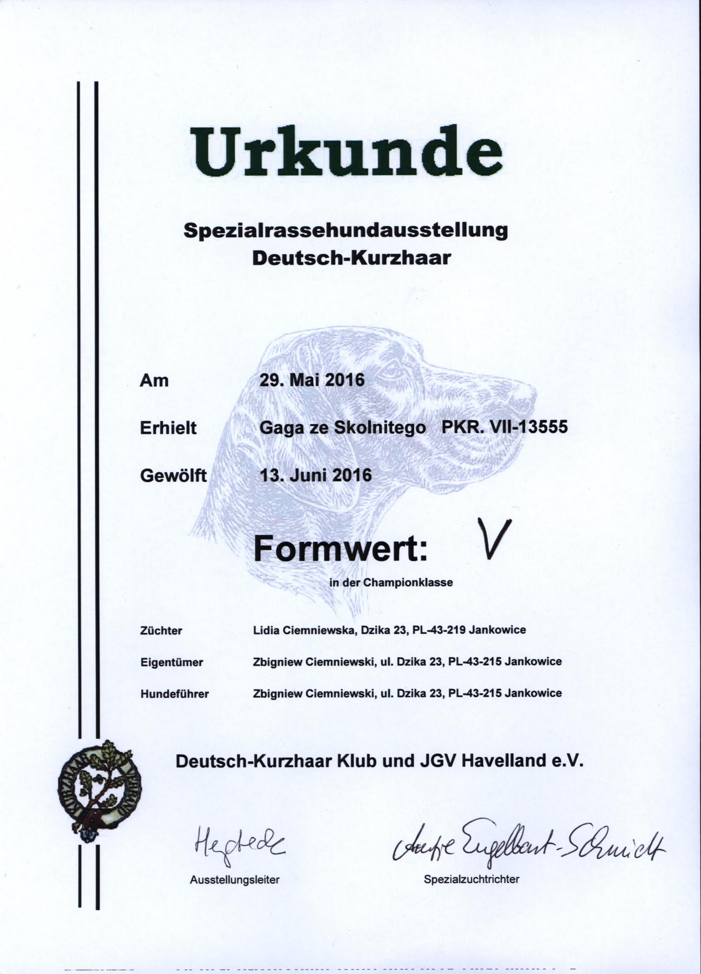 - GAGA – Dyplom Klubowa Wystawa Marquardt k/Poczdamu 29.05.2016
