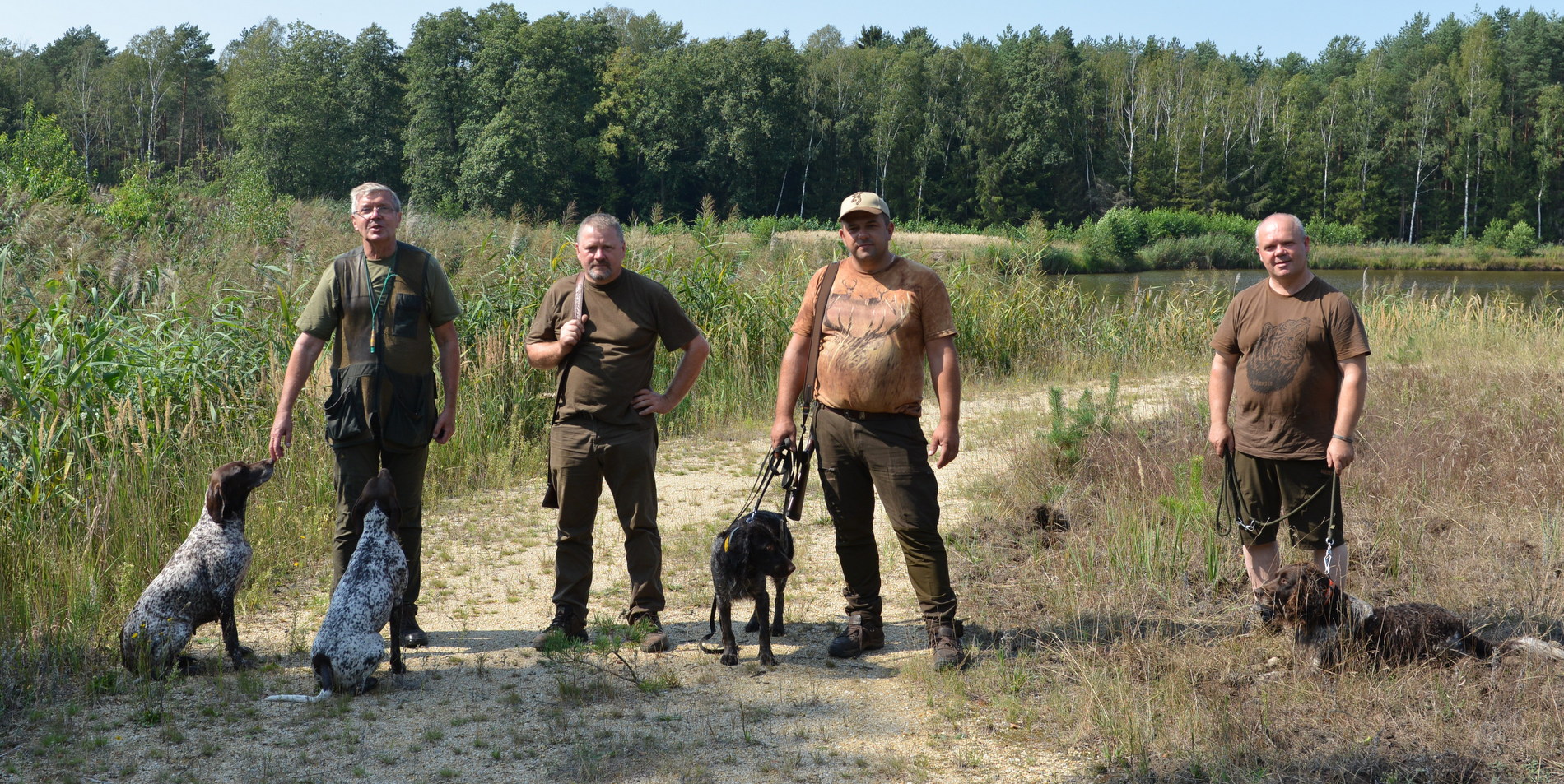 Rano spotkanie nad stawem, przy drewnianej wiacie KŁ “Ostoja”. Tradycyjne poranne rozmowy, odprawa, i 40 myśliwych z licznymi, co trzeba podkreślić, psami, rusza na stawy. Polowaliśmy w czasie wspaniałej, wręcz upalnej pogody, na rozległych śródleśnych stawach z bardzo dobrym stanem kaczki. Wyraźnie dominowała krzyżówka, co zresztą widać było potem na pokocie. Teren trudny, stawy porośnięte głównie twardą i gęstą trzciną, znacznie utrudniającą pracę psom. Polowanie bardzo dobrze zorganizowane i prowadzone. Po zakończeniu pędzeń i powrocie na miejsce zbiórki kolejne zaskoczenia – rozstawiony namiot z profesjonalnie serwowanym posiłkiem. Muszę powiedzieć, że poluję w wielu miejscach Polski, ale gościnności w takiej skali, jeszcze nie spotkałem. Humory wszystkim znakomicie dopisywały i nawet Król Pudlarzy, który obok medalu, nie będącego z pewnością tytułem do chwały, musiał spokojnie siąść na “katowskiej ławie”, nie wyglądał na specjalnie zmartwionego. Dla mnie pewnym zaskoczeniem był leżący na pokocie szop pracz, w moich stronach zwierz zupełnie egzotyczny, natomiast tam gdzie polowaliśmy częsty szkodnik, będący coraz większym problemem dla środowiska.